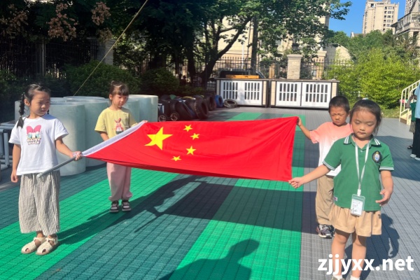 升旗仪式,歌唱祖国。幼儿举着国旗走向主席台,当雄壮的国歌声响起,五星红旗冉冉升起,他们的脸上洋溢着自豪与敬意,仿佛在说:“我们是祖国的未来,定将不负先烈期望!”